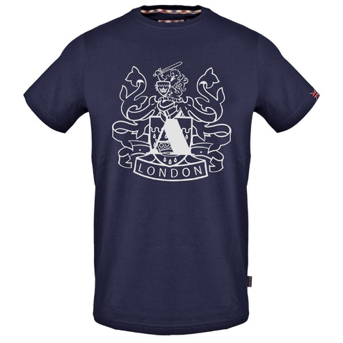 Aquascutum Large Shield Aldis Logo Navy Blue T Shirt