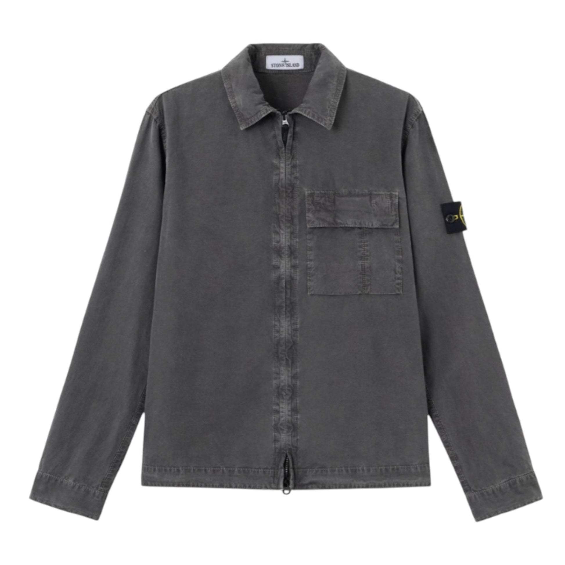 Stone Island Brushed Organic Cotton Canvas Charcoal Lead Grey Old Effect Overshirt