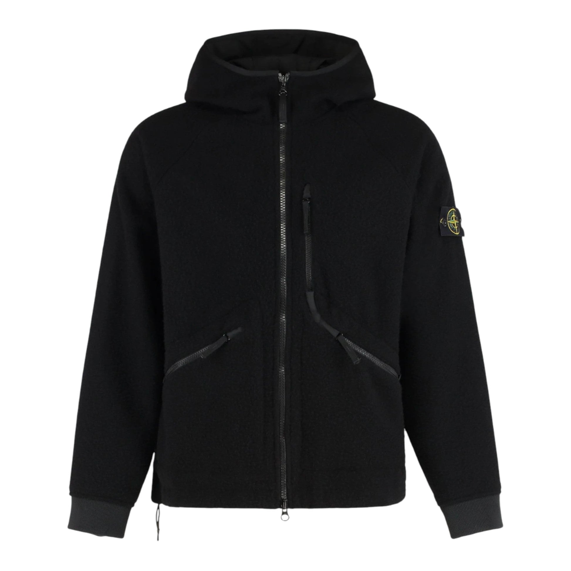 Stone Island Virgin Wool And Nylon Black Ratinated Jacket