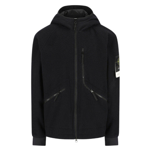 Stone Island Virgin Wool And Nylon Navy Ratinated Jacket